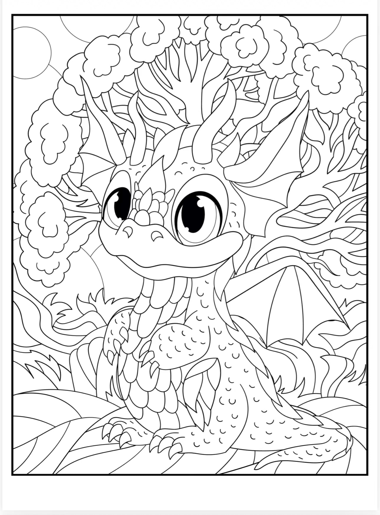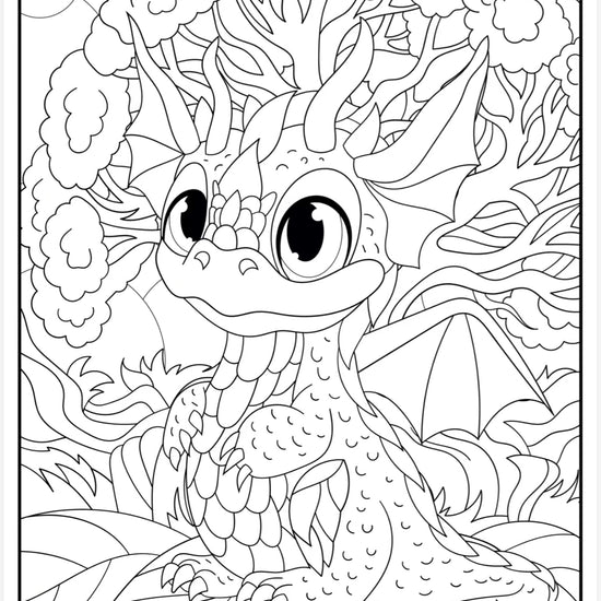 Træd ind i et magisk univers fyldt med søde og venlige drager med Mini Drager – Hygge pakke, en print-selv malepakke med 30 håndtegnede drage-illustrationer, skabt specielt til børn.