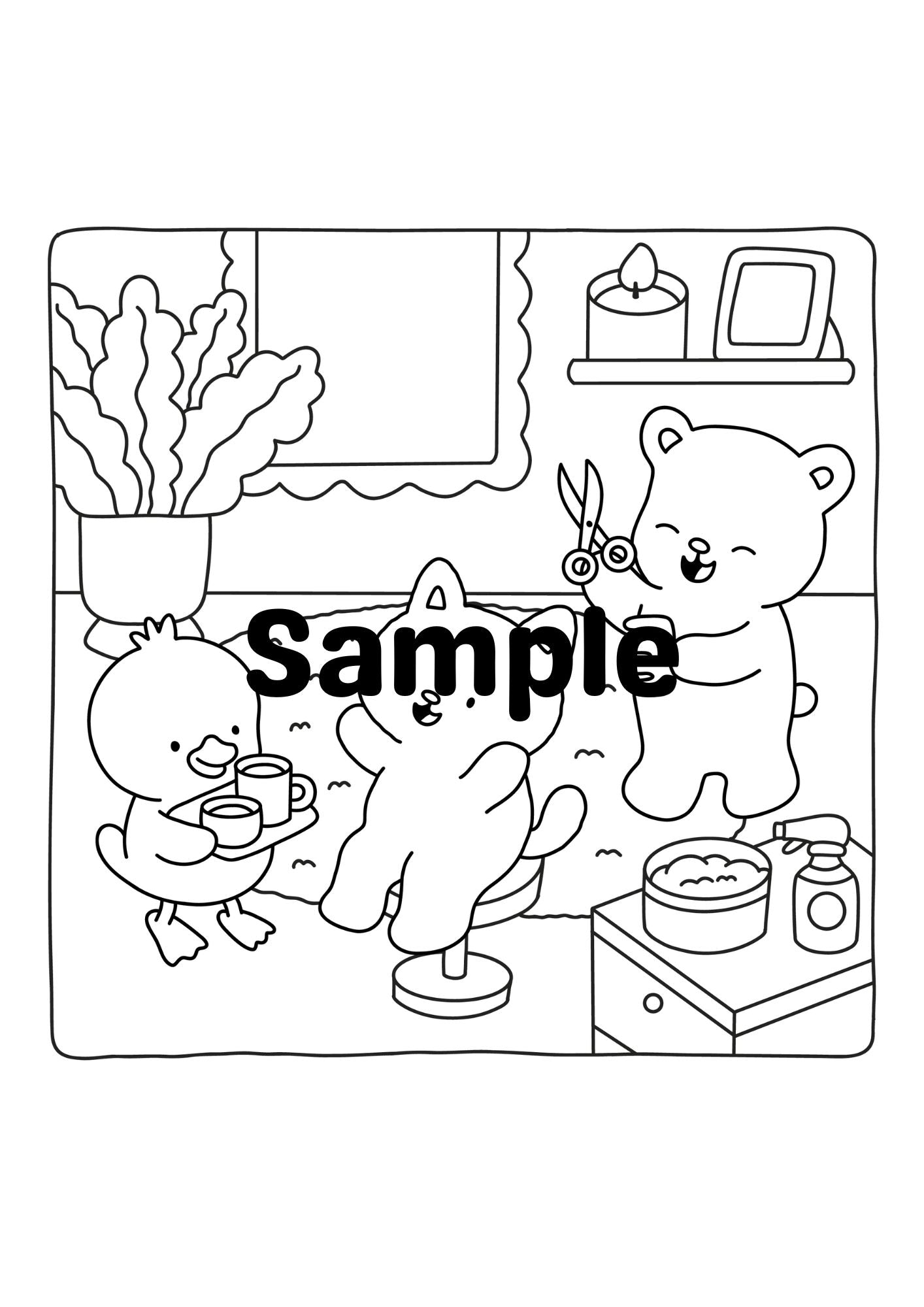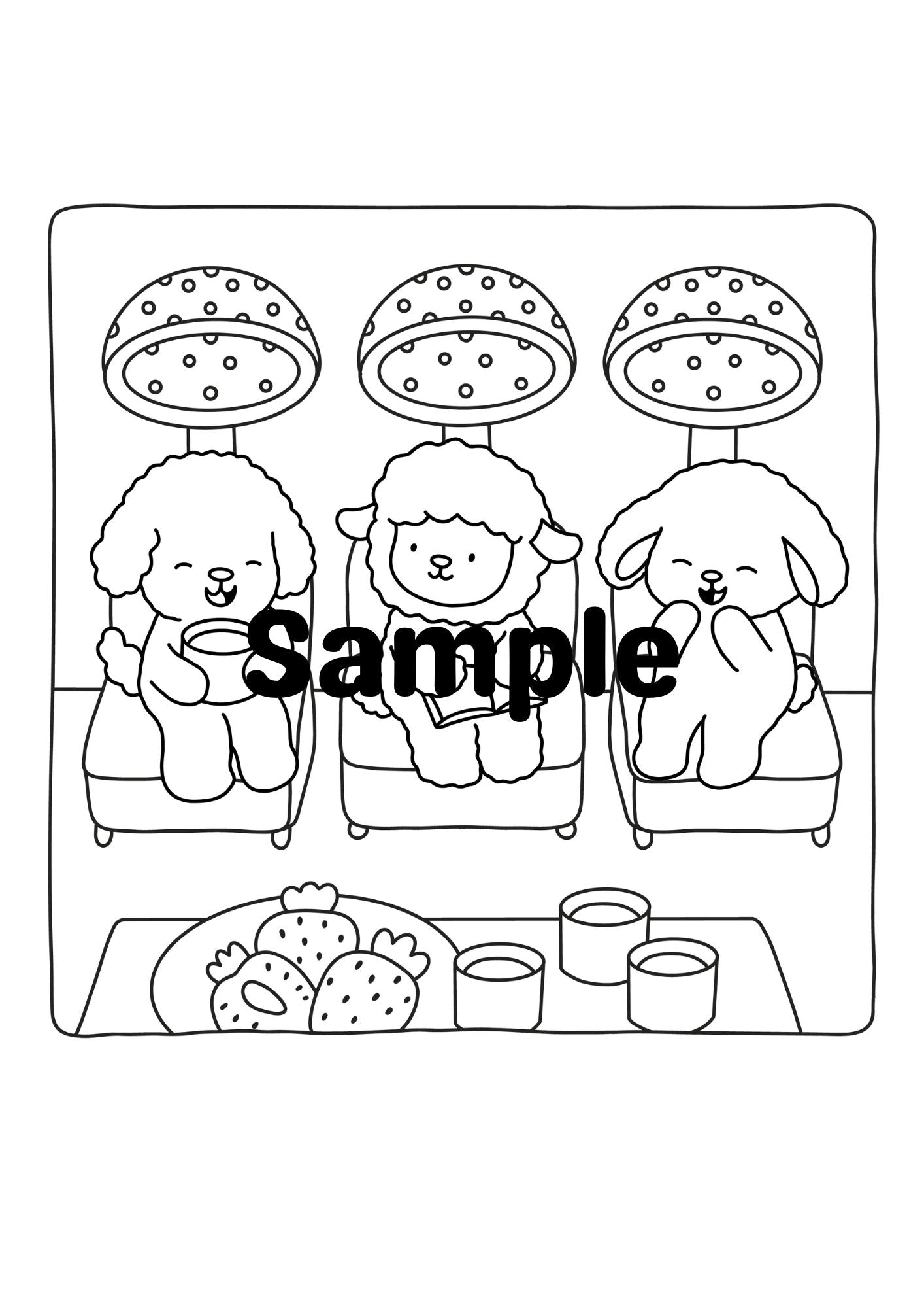 Color soothing spa-themed illustrations: face masks, tea, bubble baths, flowers, scented candles, and self-indulgence – simple and beautiful designs that help slow down and create inner peace.