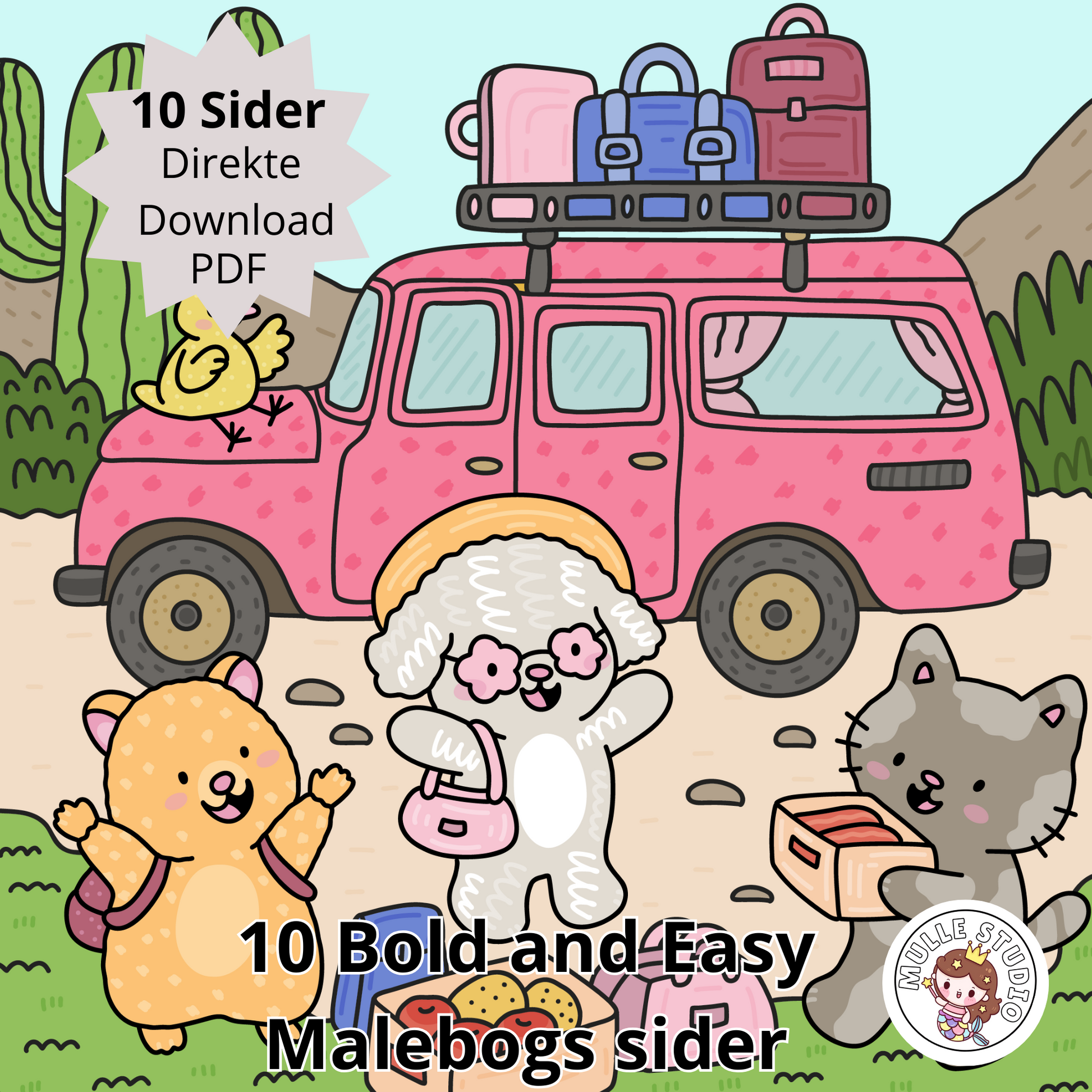 “Friends on a Trip” is a heartwarming and imaginative print-your-own coloring book filled with little adventures, good laughs and cozy moments in the great outdoors. Here you will meet cute characters on walks, picnics, bike rides and little vacations together – all ready to be colored with your own colors and stories.